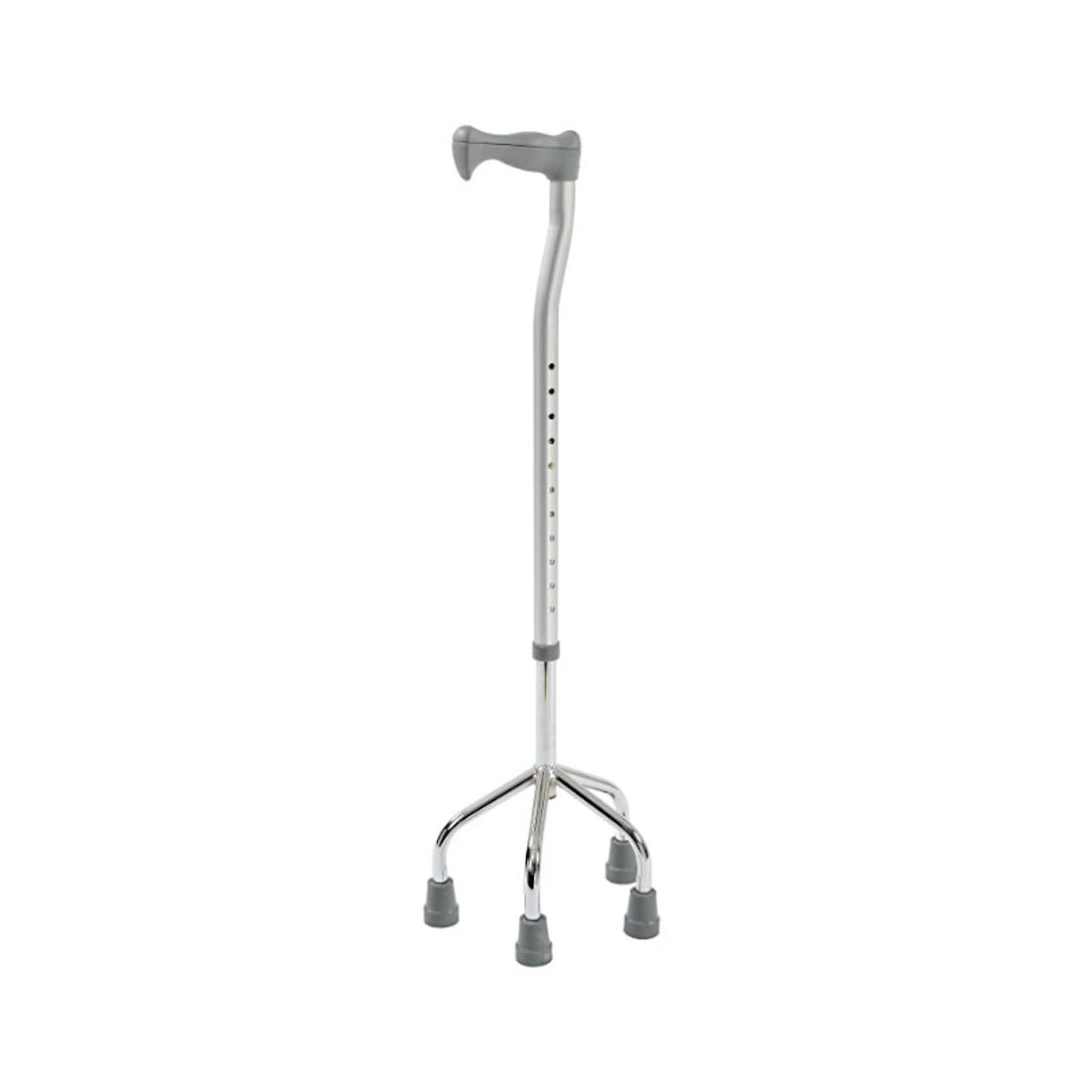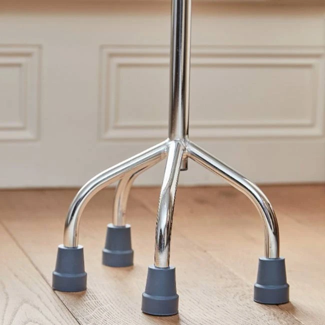 Denne stok med fire ben er designet til at give ekstra stabilitet og sikkerhed sammenlignet med en traditionel stok. Med dens robuste konstruktion og skridsikre dupsko af høj kvalitet er den et pålideligt ganghjælpemiddel, der sikrer tryghed i hverdagen. En 4-punkt stok som denne fås både i en smal og en bred model, hvor dette er den smalle model.