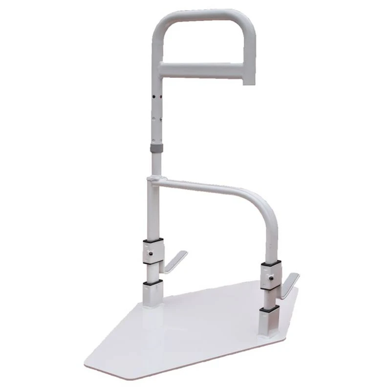Den leveres i to dele med selve grebet og en gulvplade, hvorpå støttegrebet skal påsættes. Under gulvpladen er en anti-glid gummibelægning, som beskytter gulvet og sikre, at gulvpladen står stabilt på gulvet.