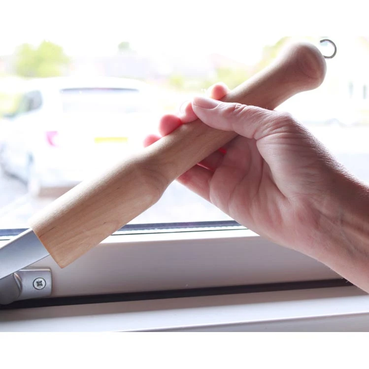 Denne dør- og vinduesåbner er fremstillet i træ.
