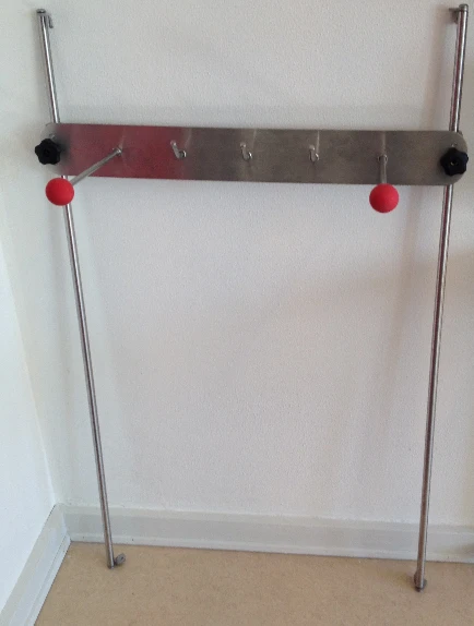 DressOn – Glider monteres parallelt på væggen med en afstand på 40 cm fra gulvet. På en jakkepåklæder er der monteret to drejehåndtag, som holder jakkepåtageren fast om glideren.