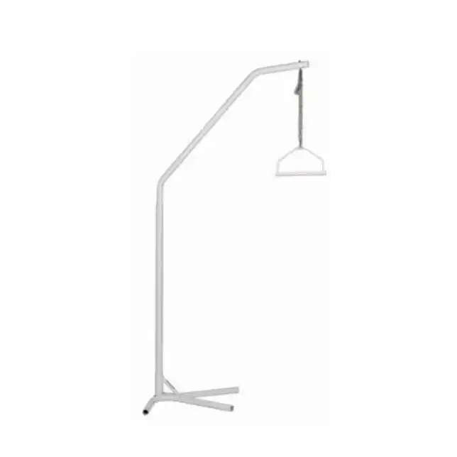 Hvid sengegalge, fritstående fra Merry er fritstående og i stål. Stellet på Denne sengegalge skal placeres under sengen, for at man ikke falder over det. Håndtaget er højdeindstilleligt, og spærret så det ikke falder af, det er desuden svingbart 30 grader.