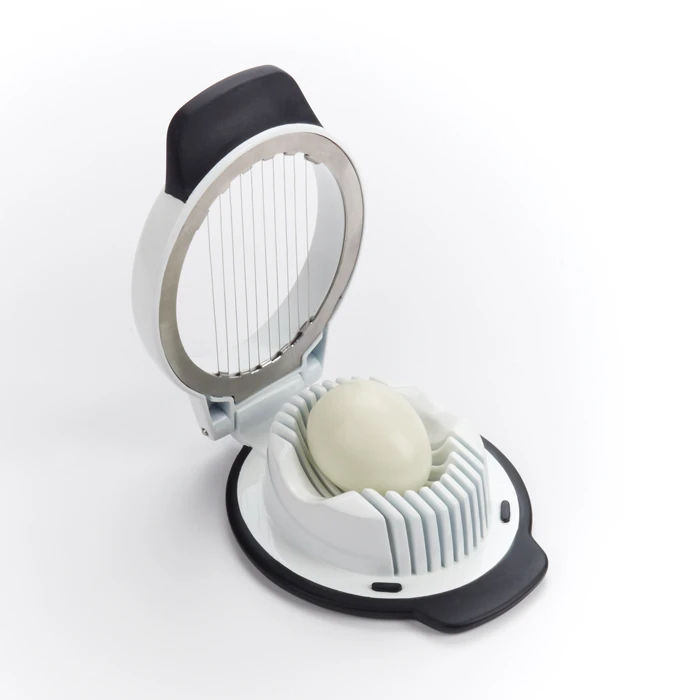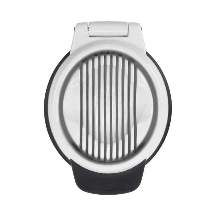 OXO Good Grips æggedeler skærer hurtigt og nemt hårdkogte æg i skiver. Denne æggeskærer giver skiver på 5 mm med et enkelt tryk.