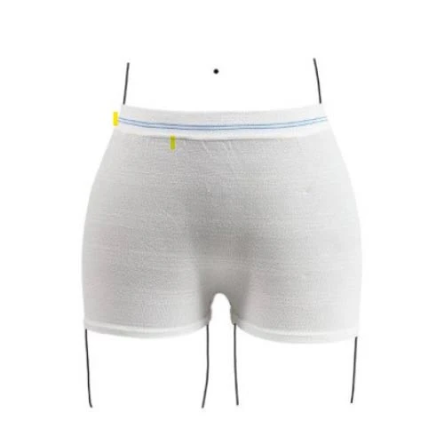 Find omhyggeligt den rigtige størrelse, for maksimal udnyttelse af underbuksens funktion. Den rigtige størrelse forhindrer/reducere risikoen for lækage og unødvendige skift. Størrelsen af trusserne måles rundt om taljen. En fikseringstrusse bør opbevares ved stuetemperatur – undgå sollys.