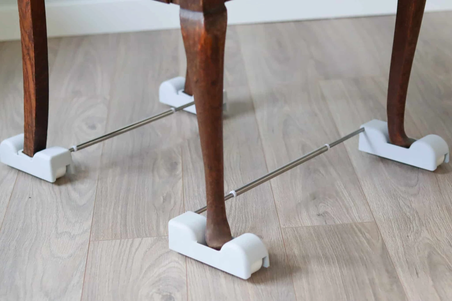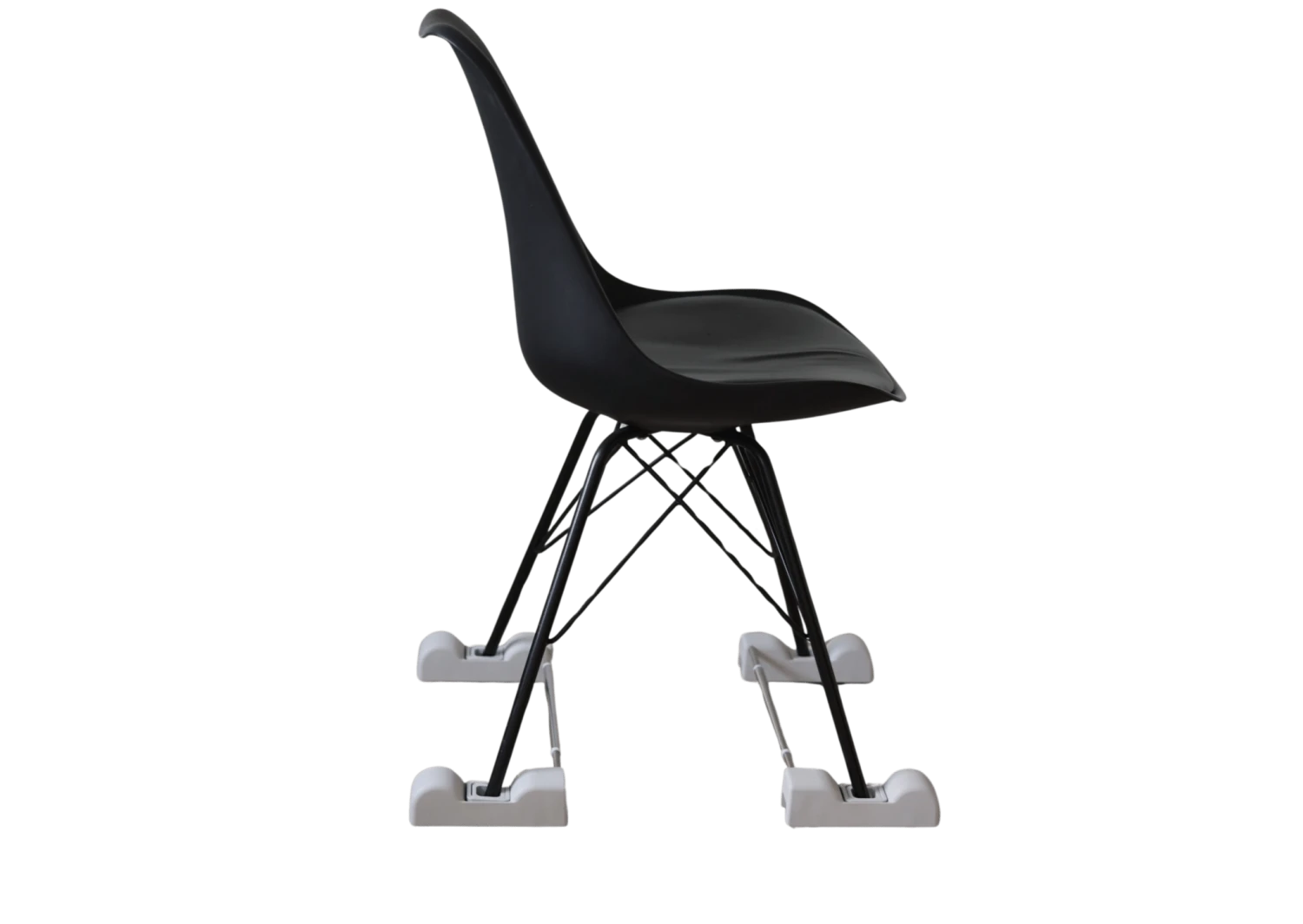 så fordybningerne er præcis bag stolebenene. - Vend produktet så stangen er inde under stolesædet.