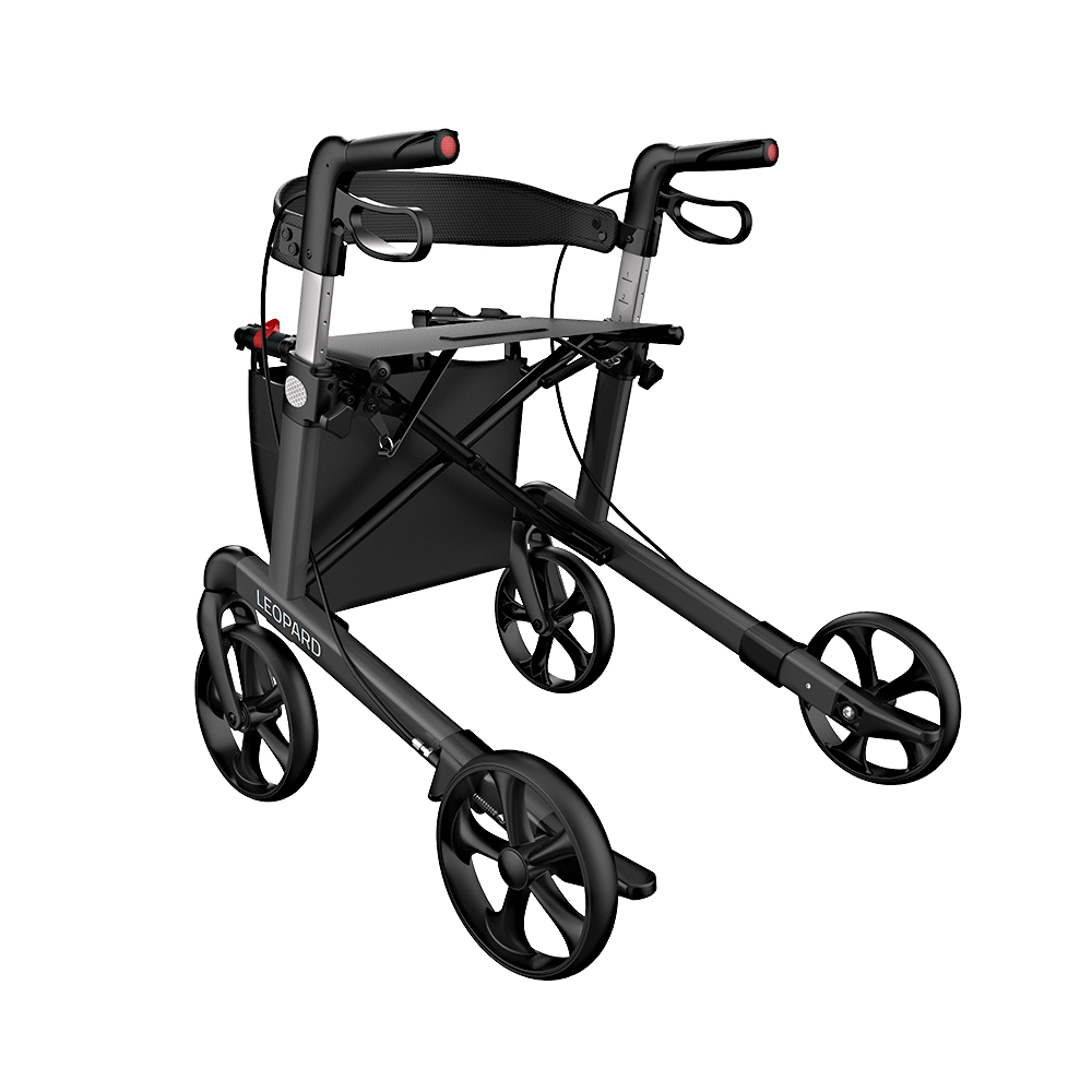 Den populære Mobilex Leopard rollator er vores mest solgte rollator – både på vores webshop og i vores hjælpemiddelbutik i Randers. Det skyldes, at du med denne rollator får en rigtig god kvalitet i et elegant design til en overkommelig pris. Den er desuden udstyret med 2 låsbare bremsere med parkeringsfunktion.