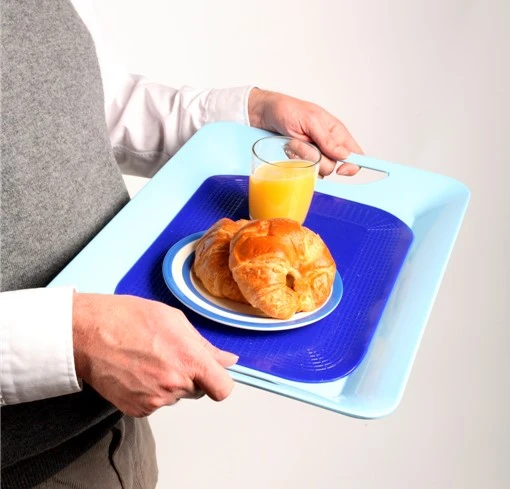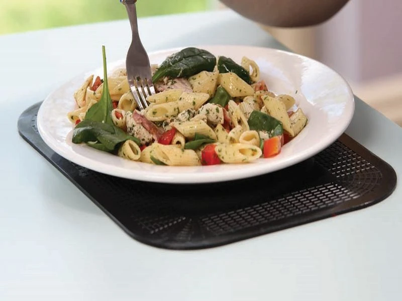 - Servering: Brug pladen som et skridsikkert underlag i serveringsbakker, så glas og tallerkener holdes på plads.