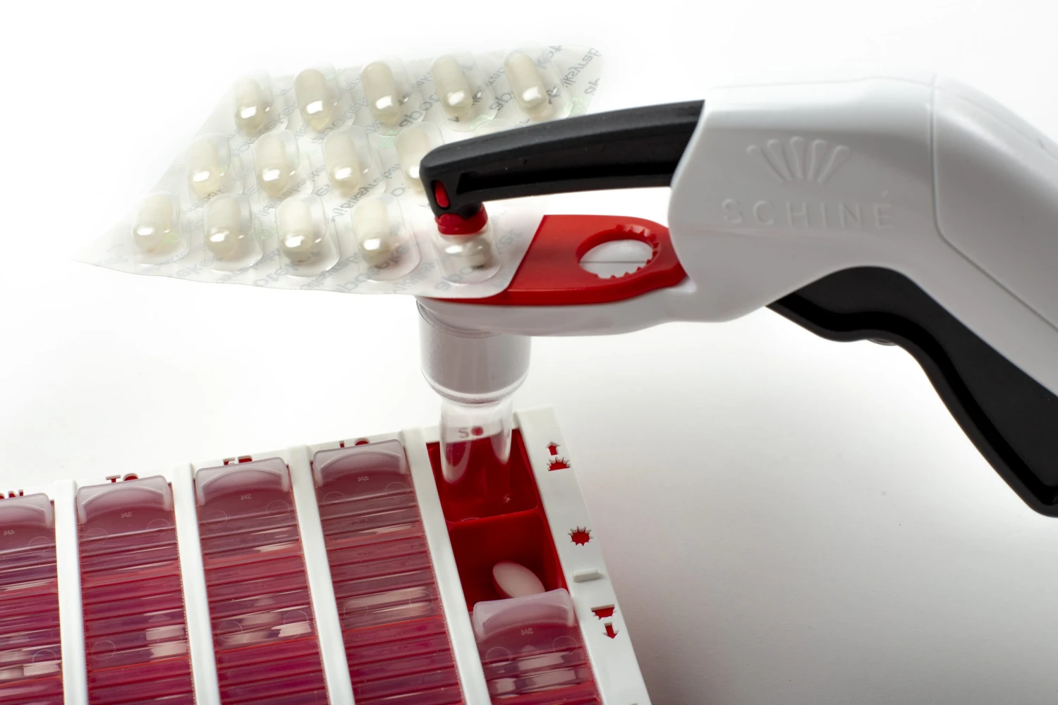 Hvis du oplever, at det kan være en udfordring at trykke dine piller og tabletter ud af blisterpakningen, så er hjælpen på vej. Med den nye pilleudstanser Pill Popper fra det svenske firma Schine er det nu betydeligt lettere af få pillerne ud af blisterpakningen. Med Pill Popper er det nu muligt at trykke pillerne ud direkte ned i pilleæsken. Pilleudstansning kan både for private og for sundhedspersonale være en udfordrende opgave. Denne pilleudstanser giver brugeren en effektiv aflastning i forhold til fingre og hænder – ikke mindst for sundhedspersonalet, som står med medicinhåndtering til borgerne. Så hvis du har nedsatte funktionsevner i fingrene som følge af gigt eller andre udfordringer eller blot ønsker at aflaste dine hænder, så er Pill Popper pille-udstanseren en god løsning.