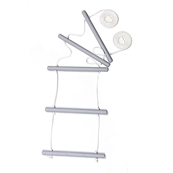 Rebstige med nylonsnor. På denne stige til seng, er der 5 pinde og snorene kan reguleres i længden.