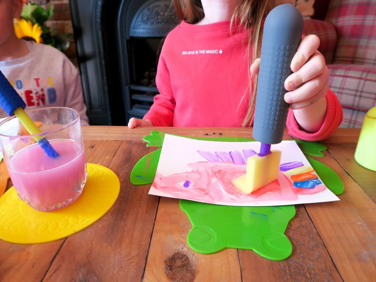 Børn lærer noget nyt hver dag. Både hvad angår spisning, skrivning, påklædning osv. Med dette greb kan du fremme barnets finmotoriske udvikling, da den øgede håndtagsstørrelse gør det lettere at holde om og kontrollere bestik, blyanter, pensler, tandbørster osv.