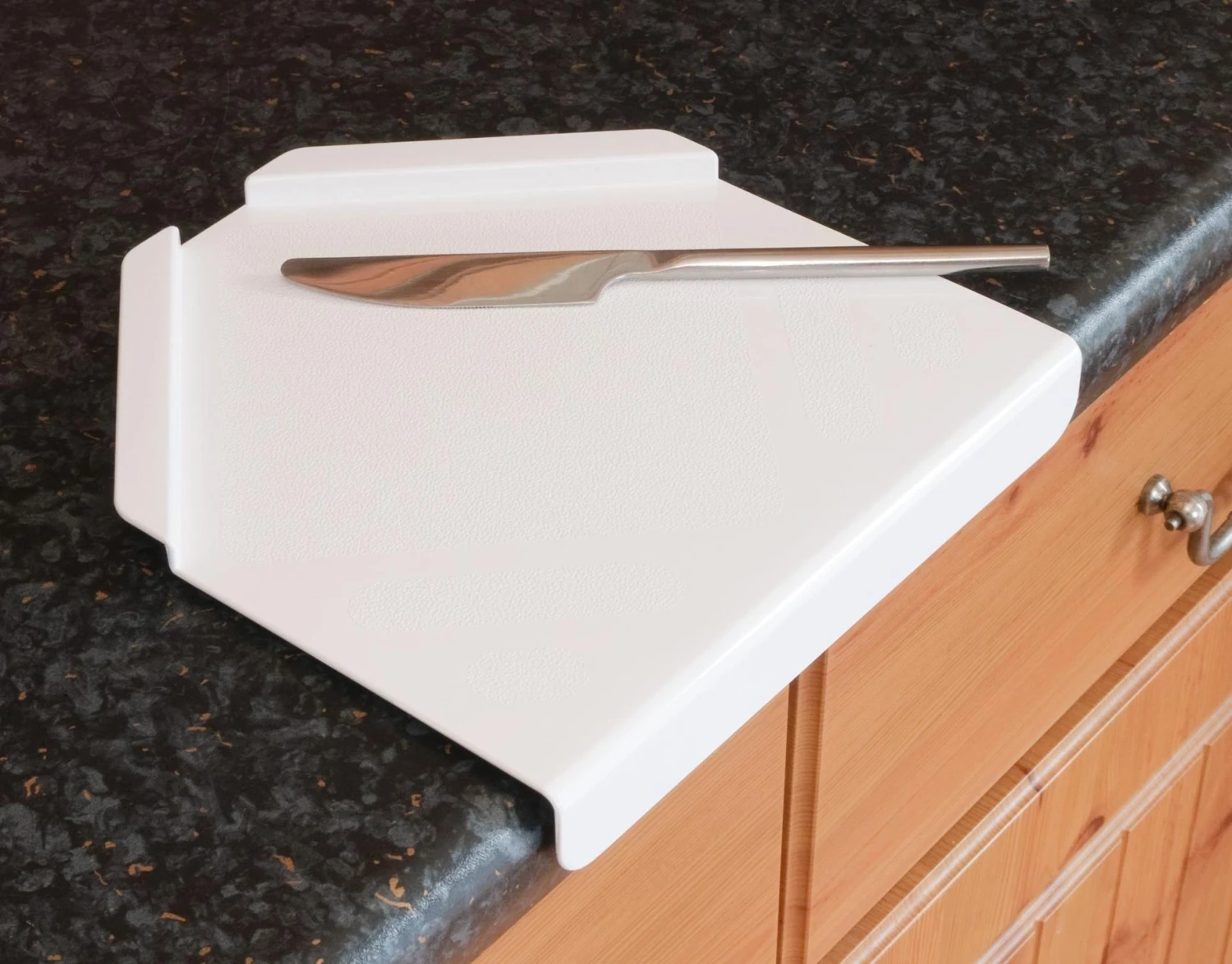 Smørebrættet har 2 kanter (L-kant) på 1 cm. højde i to sider, som støtter maden, der skal skæres eller smøres. Brættet fastholdes til bordet ved hjælp af en nedbøjet kant langs bordkanten. Under brættet er der påsat plastik dupper, der ligeledes er med til at holde brættet fast og stabilt til overfladen af bordet. Skærebrættet er udstyret med en ru non-slip overflade, så maden ikke glider, mens det bliver håndteret.