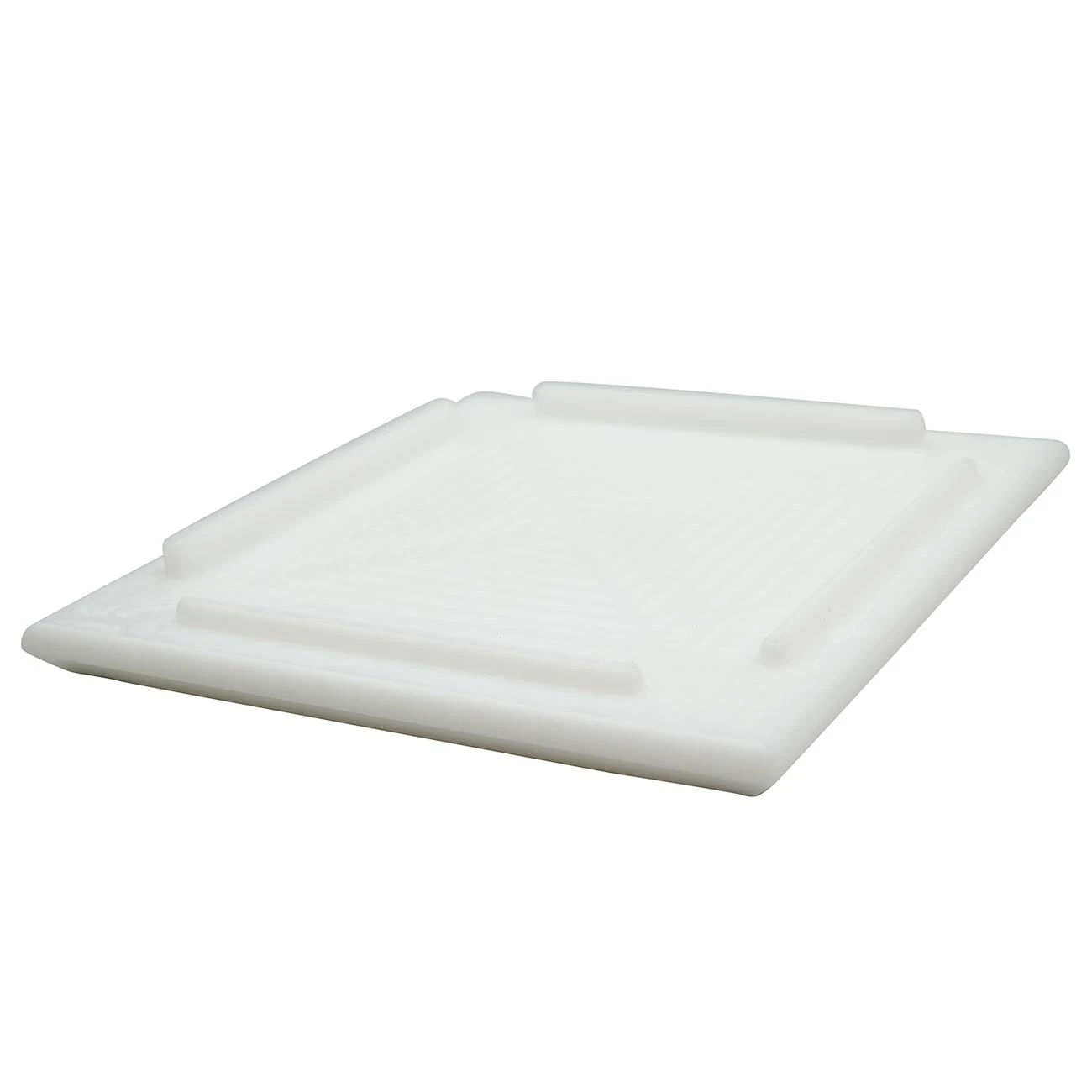Dette hvide smørebræt henvender sig til personer, som kun kan anvende den ene hånd til at smøre sine brød eller til personer med nedsatte kræfter i hænderne. Brødet placeres tæt på og op til kanten, så det fastholdes, medens der smøres. Der er monteret anti-skrid knopper under dette plast skærebræt, så det ikke flytter sig, men står stabilt på underlaget, medens du anvender det. De to af kanterne er 0,5 cm høje og de to andre kanter er 0,9 cm høje.