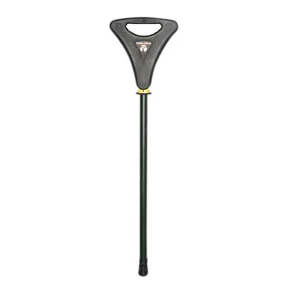 Denne stok er med 4 højdejusteringer, som indstilles på trykknapperne nederst på stokken, så den kan justeres efter den enkelte bruger. Den har en skridsikker gummifod, der også kan bruges på hårdt underlag.
