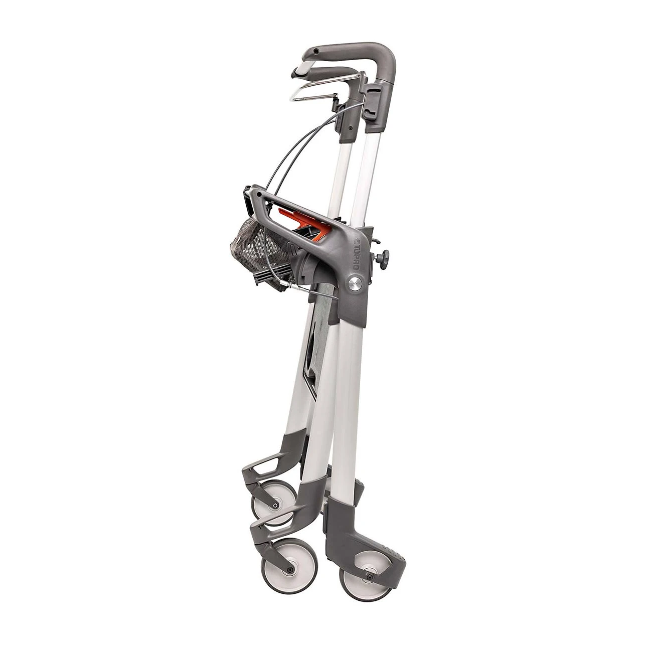 Stilfuld og pladsbesparende foldbar inde rollator, som er nem at komme rundt med i hjemmet. Den pladsbesparende rollator har et ergonomisk udformet håndtag, som er højdejusterbart og udstyret med en énhåndsbremse, så rollatoren nemt kan betjenes med én hånd.