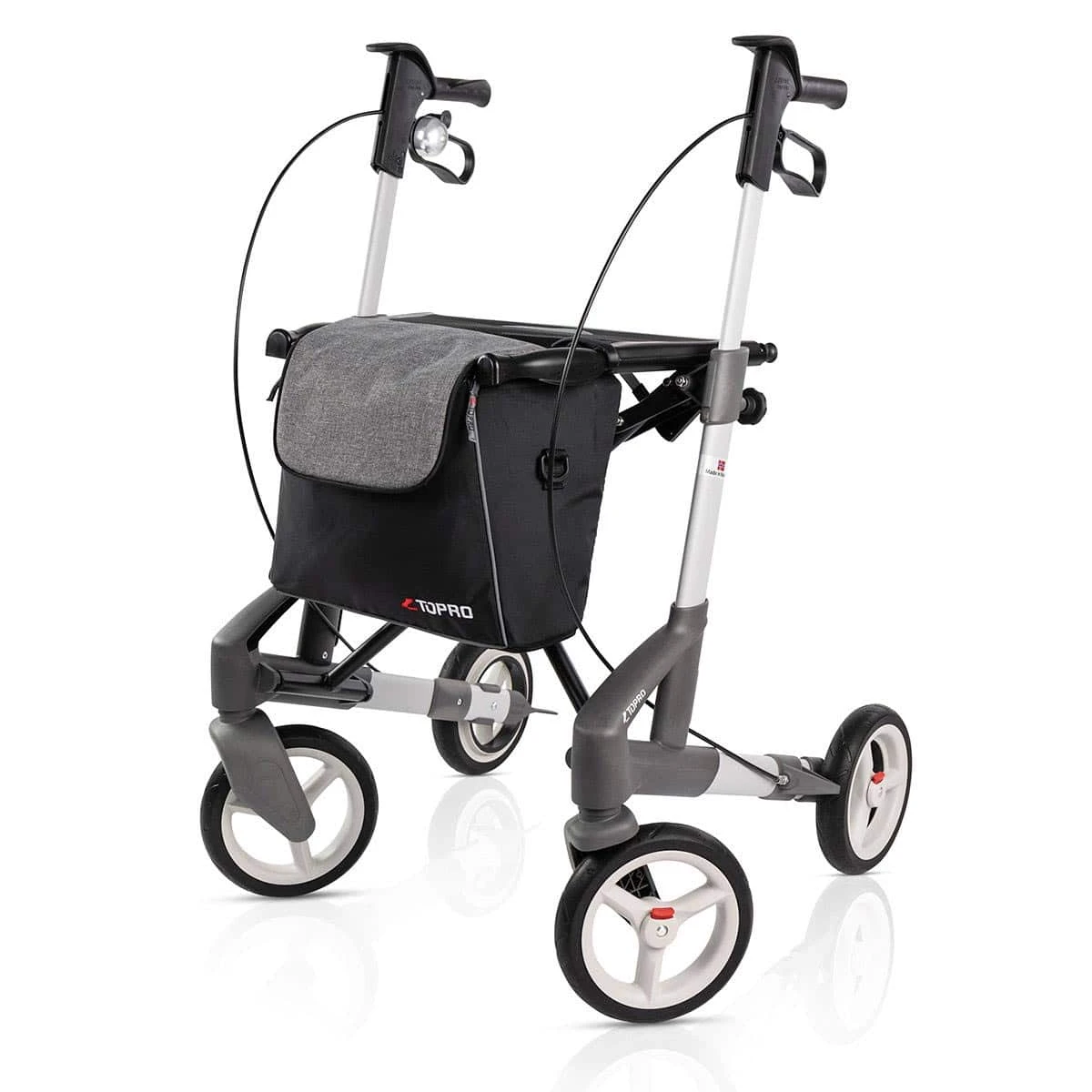 Topro Troja 5G er en moderne udendørs rollator i et slankt design i en smart mat-sølv farve. Rollatoren er udstyret med bløde hjul, som gør den ekstra behagelig og stødabsorberende at gå med.