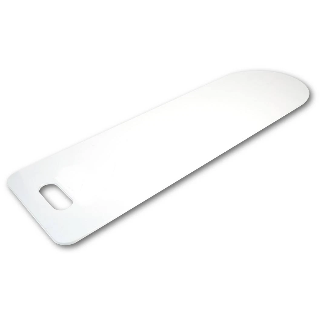 Hvidt transferbræt i kraftig 6 mm polypropylen. Glidebræt med en lav gnidningsmodstand, som gør forflytningen af personer noget lettere fra f.eks. en kørestol.