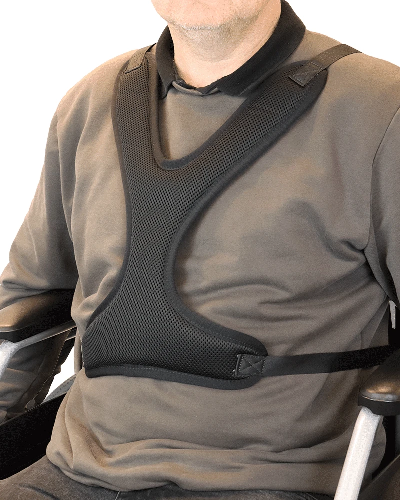 Universal front støttesele som er designet i et blødt netstof med polstring af silikoneskum. Dette sikrer en høj åndbarhed og en god komfort for brugeren. Front støtteselen har en sekskantet spændelukning, hvilket gør det nemt at montere selen korrekt på langt de fleste kørestole og toiletstole.